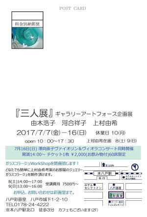 | 2016/7/7~17 八戸ギャラリーアートフォース 三人展 &WorkShop |