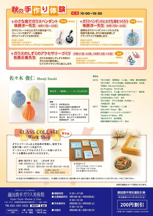 2017/8/18~9/20 藤田喬平ガラス美術館 企画展示室 個展 &WorkShop